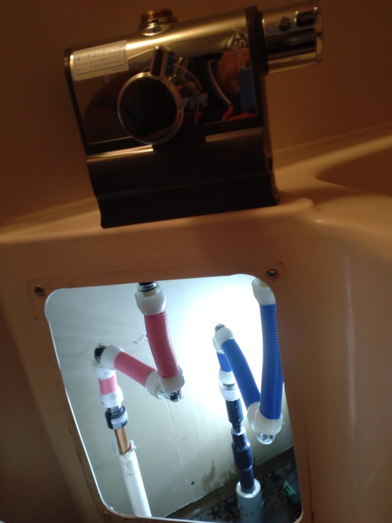 浴室|蛇口の取替・ブリジストン プッシュマスター給水、給湯配管