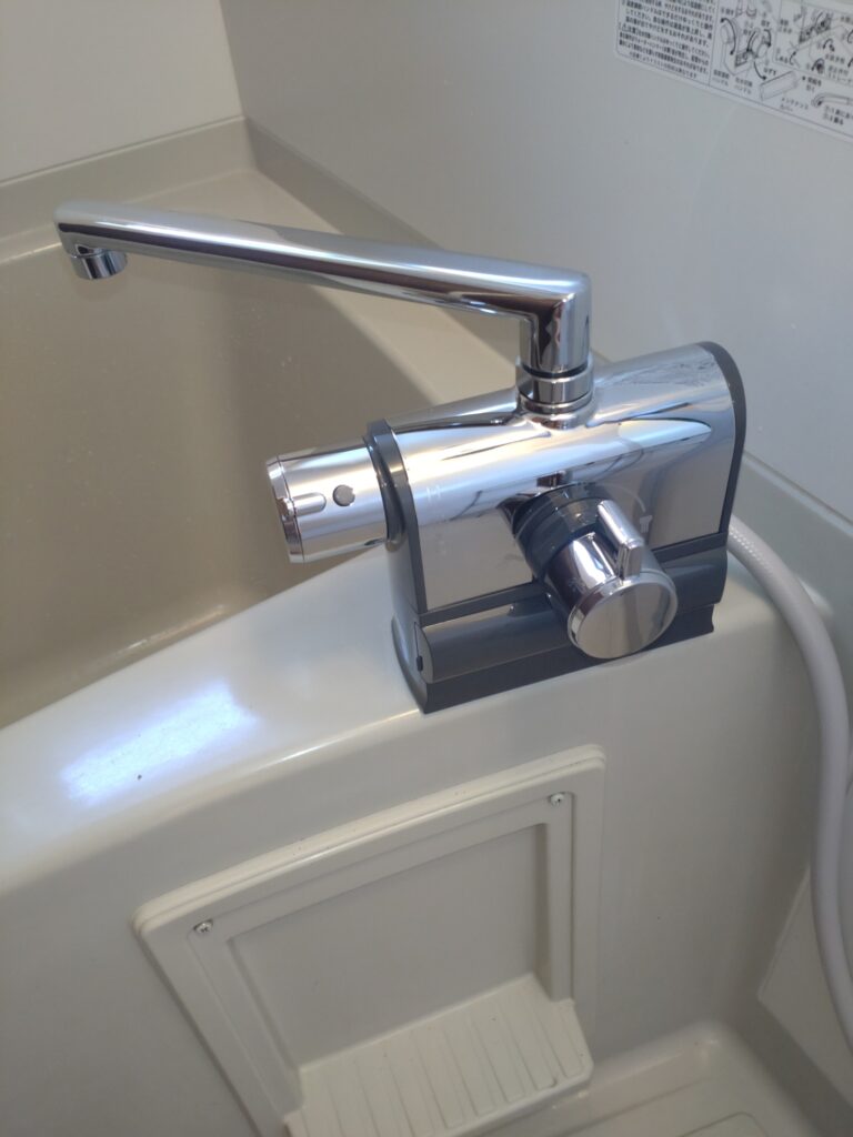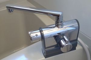 一定の温度を保って給湯する方式の水栓金具。 水圧・水流が変化した時でも、自動的に湯水混合割合を調節し温度を一定に保ってお湯が出ます。